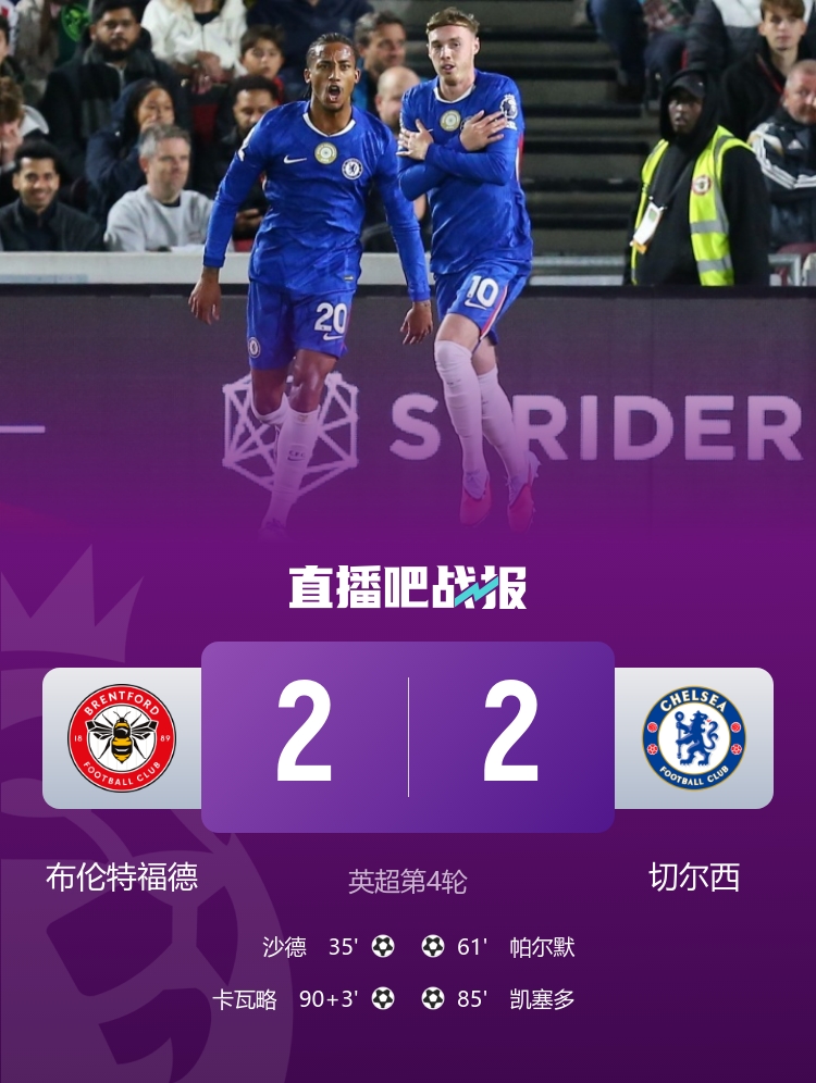 9月14日訊 英超第4輪,布倫特福德坐鎮主場(chǎng)布倫特福德社區球場(chǎng)迎戰切爾西。上半場(chǎng),亨德森精彩長(cháng)傳助攻沙德單刀破門(mén)。易邊再戰,帕爾默替補建功后失良機,加納喬替補首秀,凱塞多絕殺,卡瓦略補時(shí)再絕平。最終布倫特福德2-2切爾西。積分榜方面,切爾西8分第五,布倫特福德4分第十三。