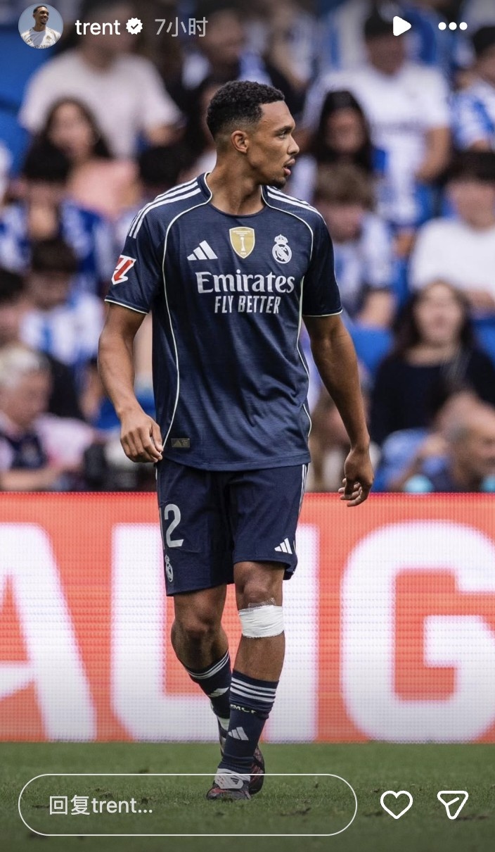 面對皇家社會(huì ),替補登場(chǎng)的阿諾德幫助皇馬客場(chǎng)全取三分。阿諾德更新社交媒體慶祝勝利:+3,加油!