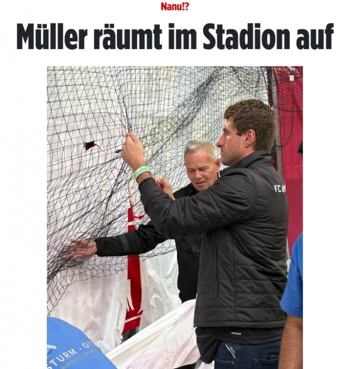 在拜仁5-0大勝漢堡的比賽開(kāi)賽前,安聯(lián)球場(chǎng)內突然出現一位與穆勒極為相似的男子。他身穿俱樂(lè )部夾克,正在協(xié)助清理南看臺死忠球迷剛剛用于TIFO表演的紅白塑料膜。