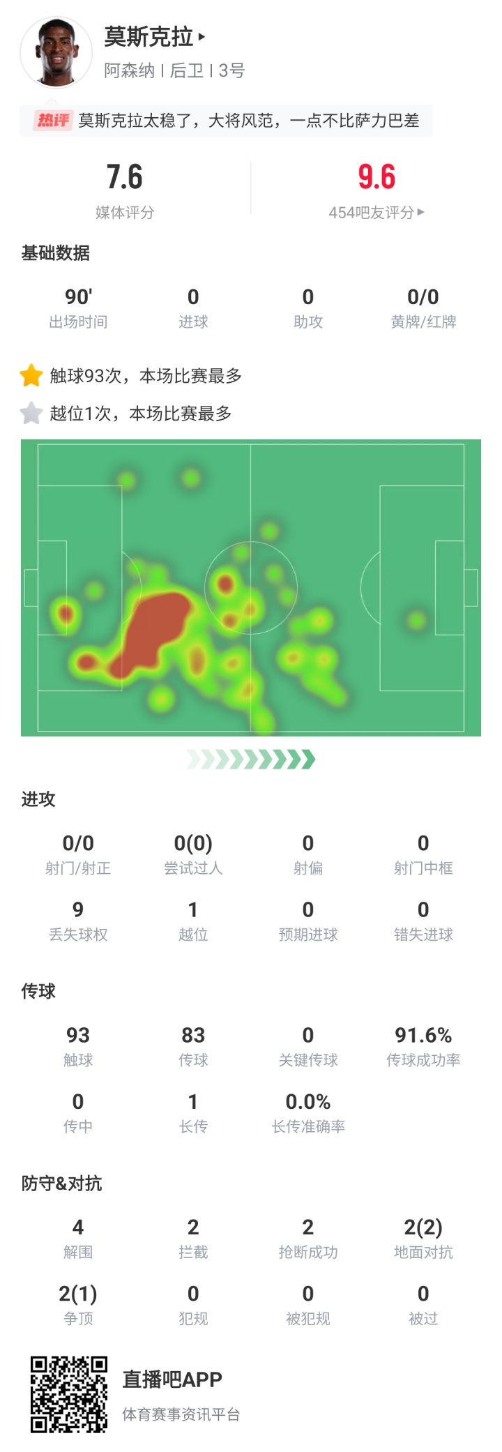 09月14日訊 英超第4輪,阿森納3-0擊敗諾丁漢森林,本場(chǎng)比賽頂替受傷的薩利巴先發(fā)的莫斯克拉發(fā)揮出色,受到球迷一致好評。