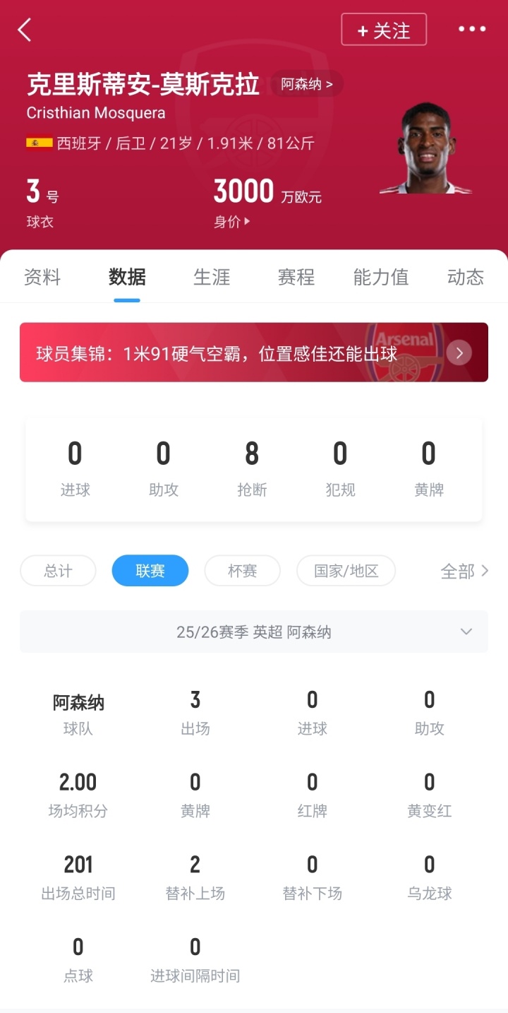 今夏,阿森納僅花費1500萬(wàn)歐轉會(huì )費,便從瓦倫西亞簽下了還剩1年合同的莫斯克拉,如今21歲的西班牙中衛身價(jià)3000萬(wàn)歐,本賽季已出戰3場(chǎng)比賽。