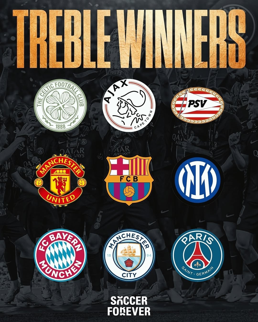 巴黎奪得本賽季歐冠冠軍,成為歐洲足壇第11支三冠王球隊,同時(shí)也是第9個(gè)實(shí)現三冠王偉業(yè)的歐洲俱樂(lè )部。