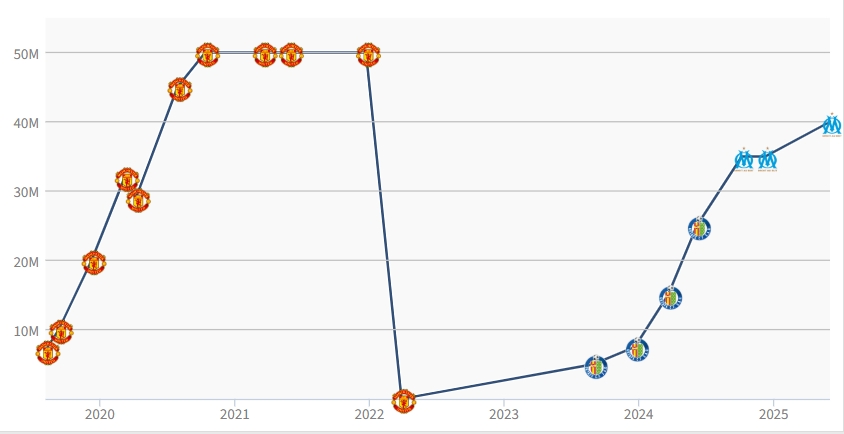 格林伍德出自曼聯(lián)青訓,最高身價(jià)曾達到5000萬(wàn)歐。但隨著(zhù)與女友的場(chǎng)外事件,格林伍德一度無(wú)球可踢,他的德轉身價(jià)也被清零。此前格林伍德被曼聯(lián)租借至西甲赫塔費,36場(chǎng)比賽貢獻10球6助。