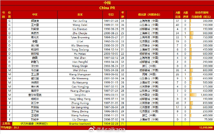 總身價(jià):中國1205萬(wàn)歐元:印度尼西亞3422.5萬(wàn)歐元???