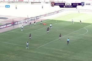 第37分鐘,武漢三鎮再次制造威脅,張振陽(yáng)禁區內停球后轉身勁射,皮球擊中橫梁下沿后彈回場(chǎng)內?!?/p>