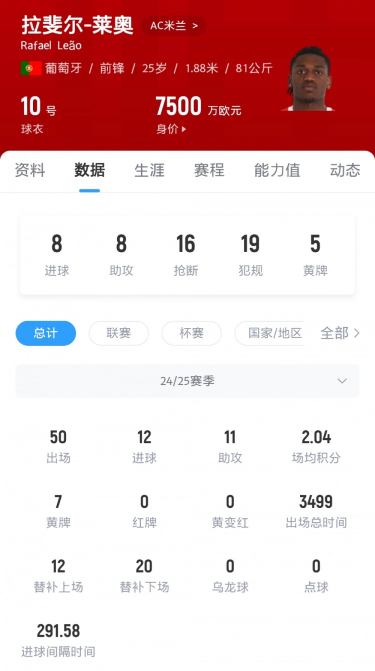 2023年萊奧接受《米蘭體育報》采訪(fǎng)時(shí)曾表示:“英超是每一名球員都夢(mèng)想參加的聯(lián)賽,因為那里的競爭非常激烈。他們擁有吸引人的足球、偉大的球隊和遍及全球的觀(guān)眾。雖然目前意甲在世界足壇的地位也很高,但未來(lái)我肯定會(huì )選擇英超?!?/span>