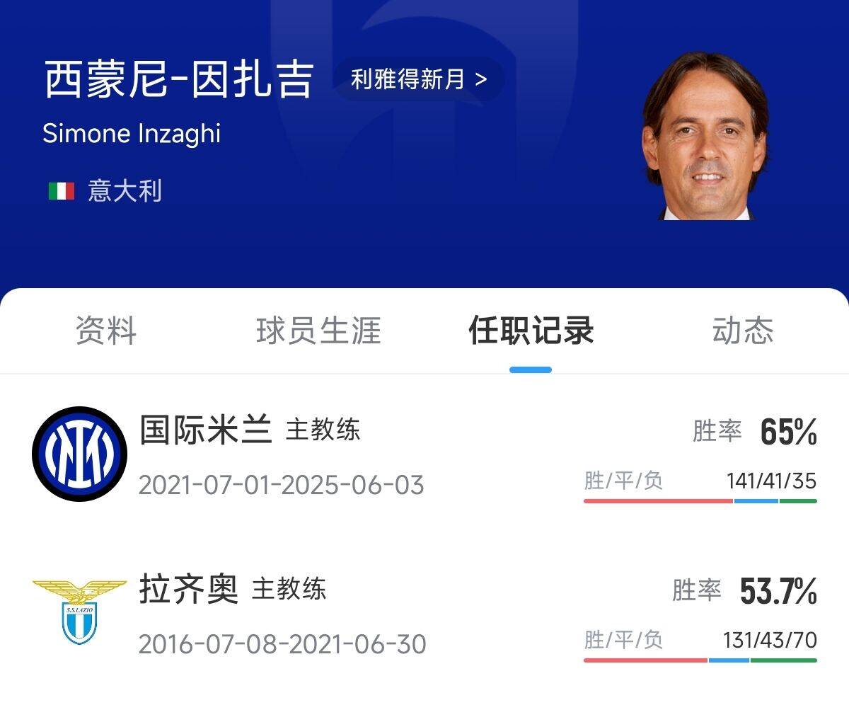 小因扎吉現年49歲,意大利籍教練,他于2021年夏天成為國米主帥,帶隊至今小因扎吉帶領(lǐng)球隊贏(yíng)得1座意甲、兩個(gè)意大利杯、三個(gè)意大利超級杯。