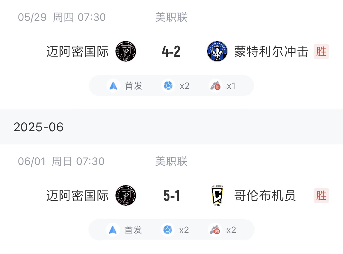 上一場(chǎng)4-2蒙特利爾沖擊的比賽中,梅西貢獻2射1傳,近兩場(chǎng)比賽,直接參與了7粒進(jìn)球。