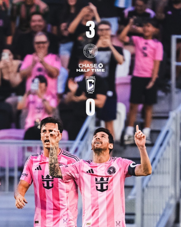 6月1日訊 北京時(shí)間6月1日07:30,美職聯(lián)常規賽邁阿密?chē)H迎戰哥倫布機員的比賽在大通體育場(chǎng)進(jìn)行,上半場(chǎng)梅西2射1傳,阿連德單刀破門(mén),布斯克茨獻助攻,半場(chǎng)結束,邁阿密?chē)H3-0哥倫布機員。