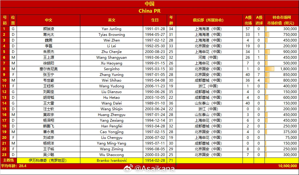 在23人名單中,來(lái)自浙江隊的后衛汪士欽、來(lái)自成都蓉城的中場(chǎng)楊明洋以及來(lái)自上海申花的前鋒劉誠宇還未上演過(guò)國足首秀。