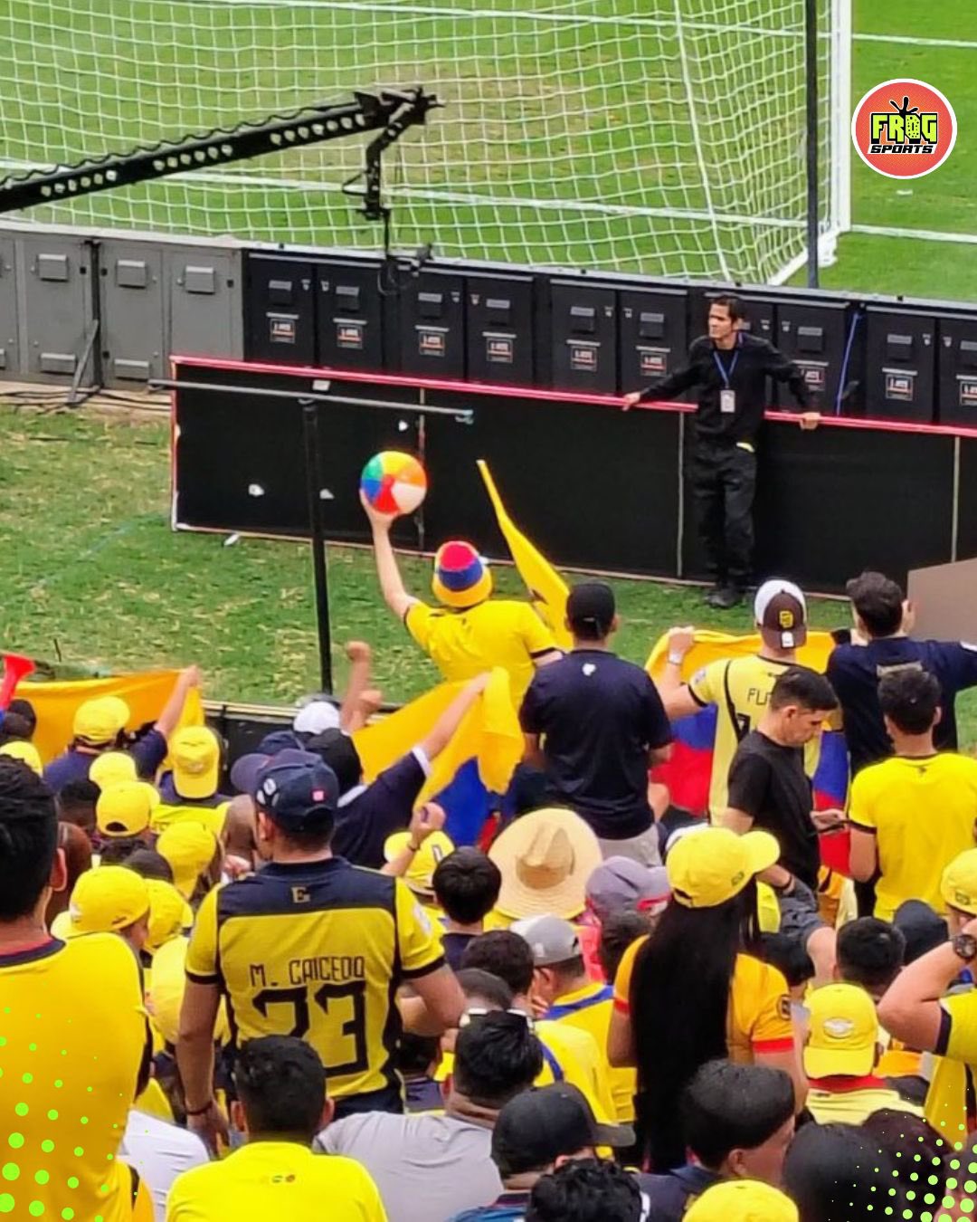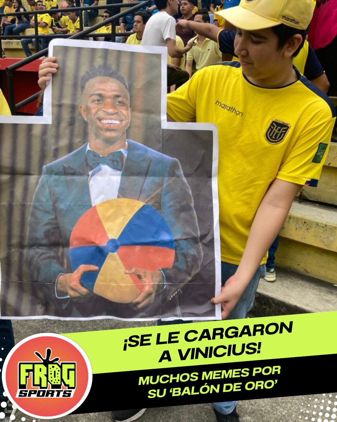 厄瓜多爾球迷舉起了沙灘球、還P了維尼修斯捧起沙灘球的圖嘲諷維尼修斯拿金球。