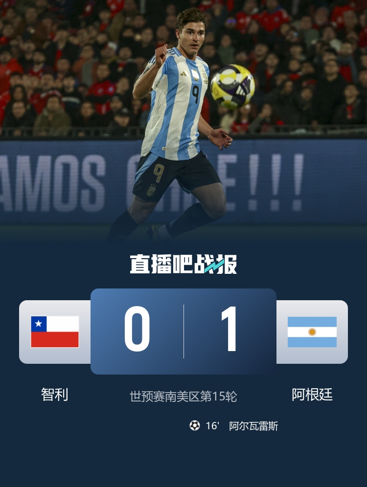 6月6日訊 北京時(shí)間6月6日09:00,世預賽南美區第15輪阿根廷挑戰智利的比賽在智利國家體育場(chǎng)進(jìn)行,上半場(chǎng)桑切斯開(kāi)場(chǎng)遠射造險,阿爾馬達助攻阿爾瓦雷斯單刀破門(mén)首開(kāi)記錄,半場(chǎng)結束,阿根廷1-0智利。下半場(chǎng)梅西替補登場(chǎng),塞佩達遠射中楣,小西蒙尼失良機,最終阿根廷1-0智利取四連勝10分領(lǐng)跑。