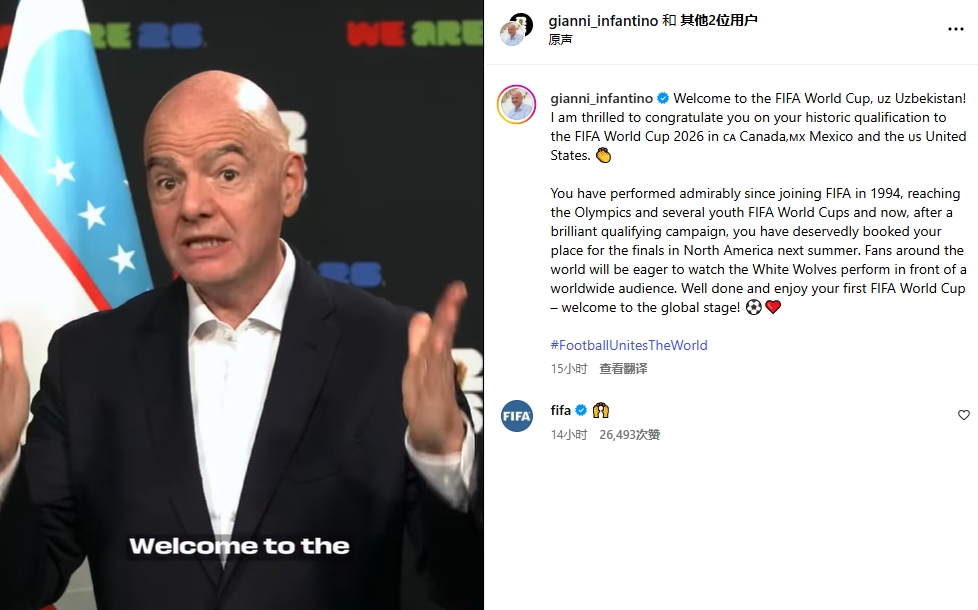 值得一提的是,這些祝賀視頻都是賽后立即發(fā)出的,明顯是提前錄制的。每一個(gè)國家的賀詞也不一樣,因凡蒂諾祝賀韓國是連續晉級,而烏茲別克斯坦和約旦是首次晉級創(chuàng )造歷史。