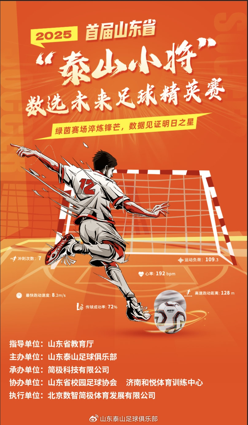 為進(jìn)一步落實(shí)《中國足球改革發(fā)展總體方案》和體教融合要求,山東泰山足球俱樂(lè )部發(fā)起主辦“泰山小將”足球精英賽,賽事由山東省教育廳擔任指導單位,由山東省校園足球協(xié)會(huì )協(xié)辦,攜手國內足球科技領(lǐng)軍企業(yè)——簡(jiǎn)極科技,為青少年球員搭建職業(yè)化的競技舞臺。