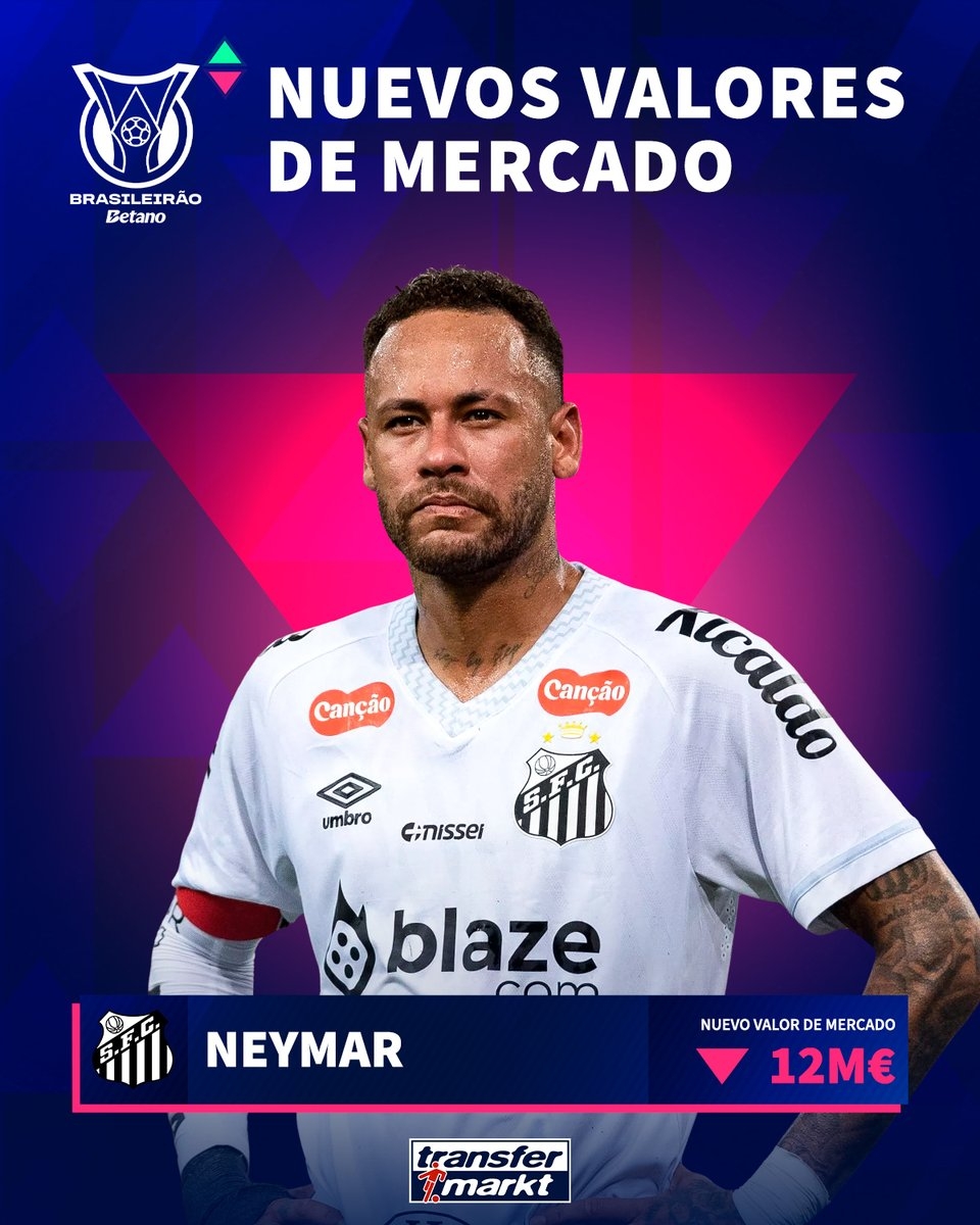 內馬爾與利雅得新月解約后,自由身返回母隊桑托斯,但受困于傷病,僅出戰12場(chǎng)比賽,貢獻3球3助。內馬爾的身價(jià)曾在2018-2019年達到巔峰的1.8億歐。