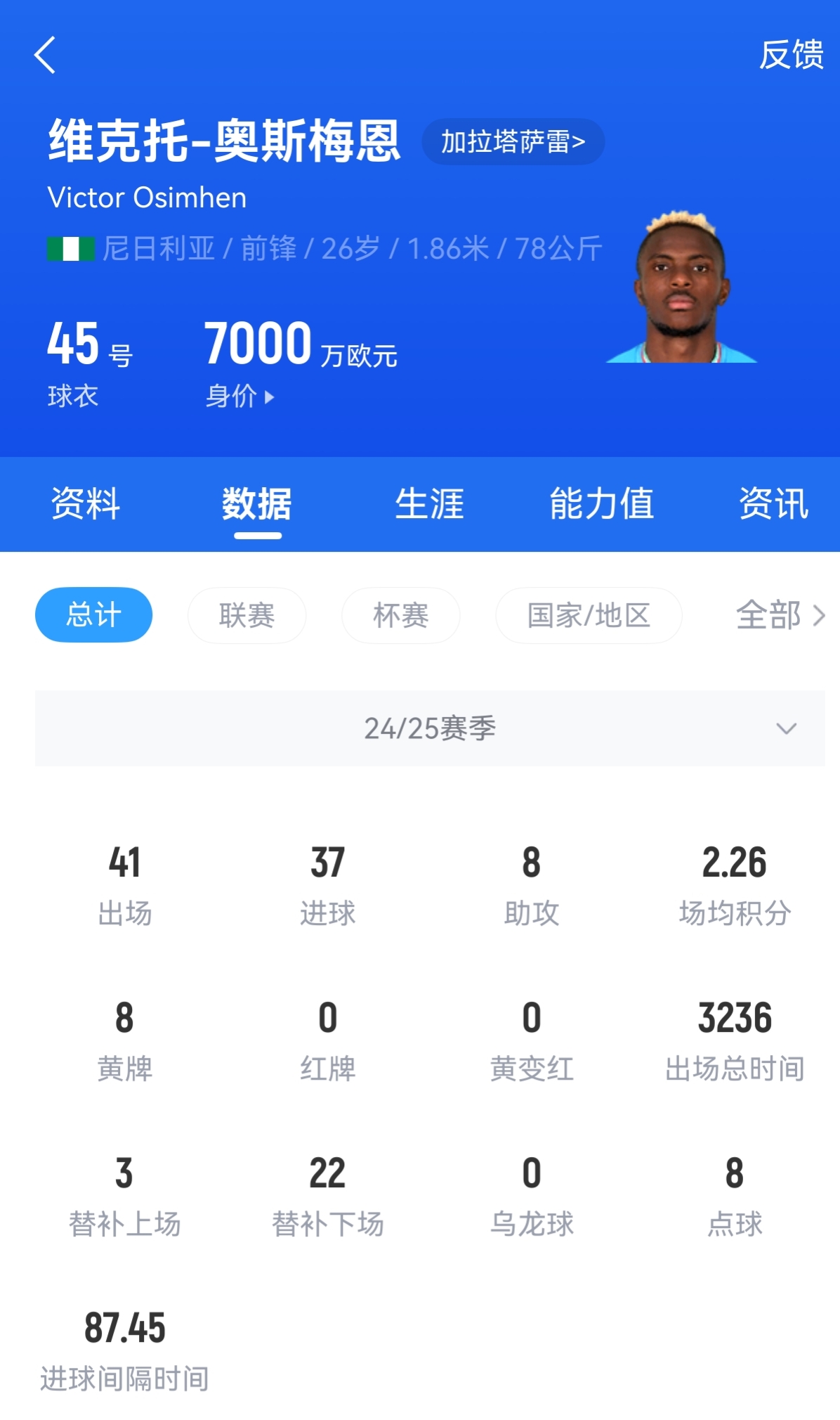 06月07日訊 據西班牙媒體《阿斯報》報道,新月已經(jīng)與奧斯梅恩就個(gè)人條款達協(xié)議,球員年薪將在3000萬(wàn)至3500萬(wàn)歐之間。