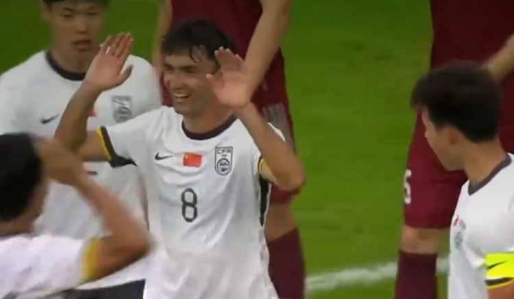 第75分鐘,U22男足角球開(kāi)出,前點(diǎn)木塔力甫頭球破門(mén),U22男足扳平比分,1-1!↓