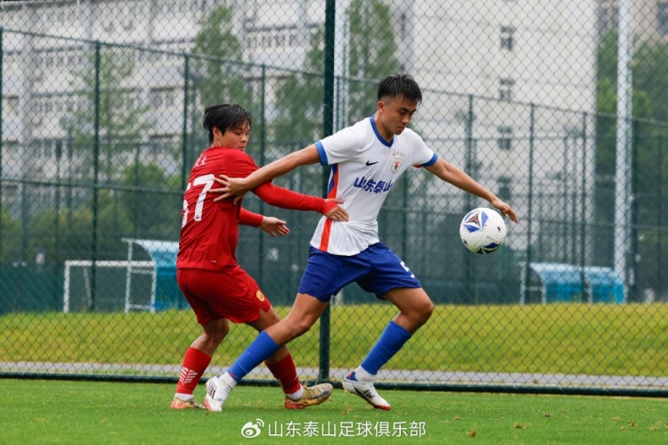 剛剛結束了全運會(huì )U20組預賽階段征程的山東泰山B隊本場(chǎng)輪休了部分主力隊員,開(kāi)場(chǎng)面對湖北青年星的密集防守持續施壓。第7分鐘,王昊斌左路突破小角度打門(mén)被胡貴瑩撲出,路俊偉門(mén)前補射被后衛封堵。第12分鐘,湖北青年星抓住為數不多的反擊機會(huì )由麥吾蘭·麥麥提依明補射先下一城。第37分鐘,山東泰山B隊前場(chǎng)反搶成功,路俊偉背身拿球制造對手犯規,彭嘯主罰任意球打出一記完美弧線(xiàn)直掛球門(mén)右上死角,山東泰山B隊扳平比分。