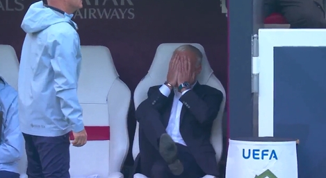 06月08日訊 歐國聯(lián)季軍戰,德國vs法國,比賽第40分鐘,姆巴佩單刀離譜踢呲,裁判隨后判罰越位,場(chǎng)邊的法國主帥德尚也是無(wú)奈捂臉。