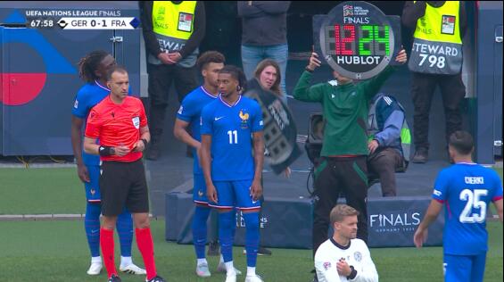 06月08日訊 第68分鐘,法國換上杜埃、奧利塞、科內,換下瓊阿梅尼、切爾基、穆阿尼。