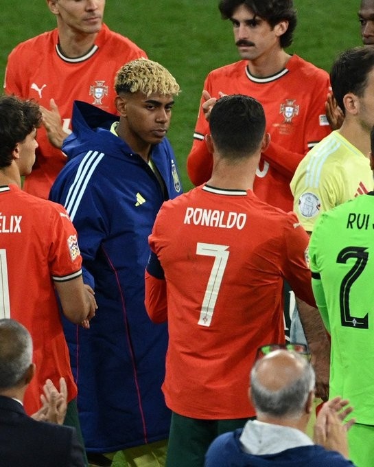 視頻顯示,賽后頒獎儀式,40歲的C羅主動(dòng)伸手想和亞馬爾握手,后者握手時(shí)則將臉側向一旁。