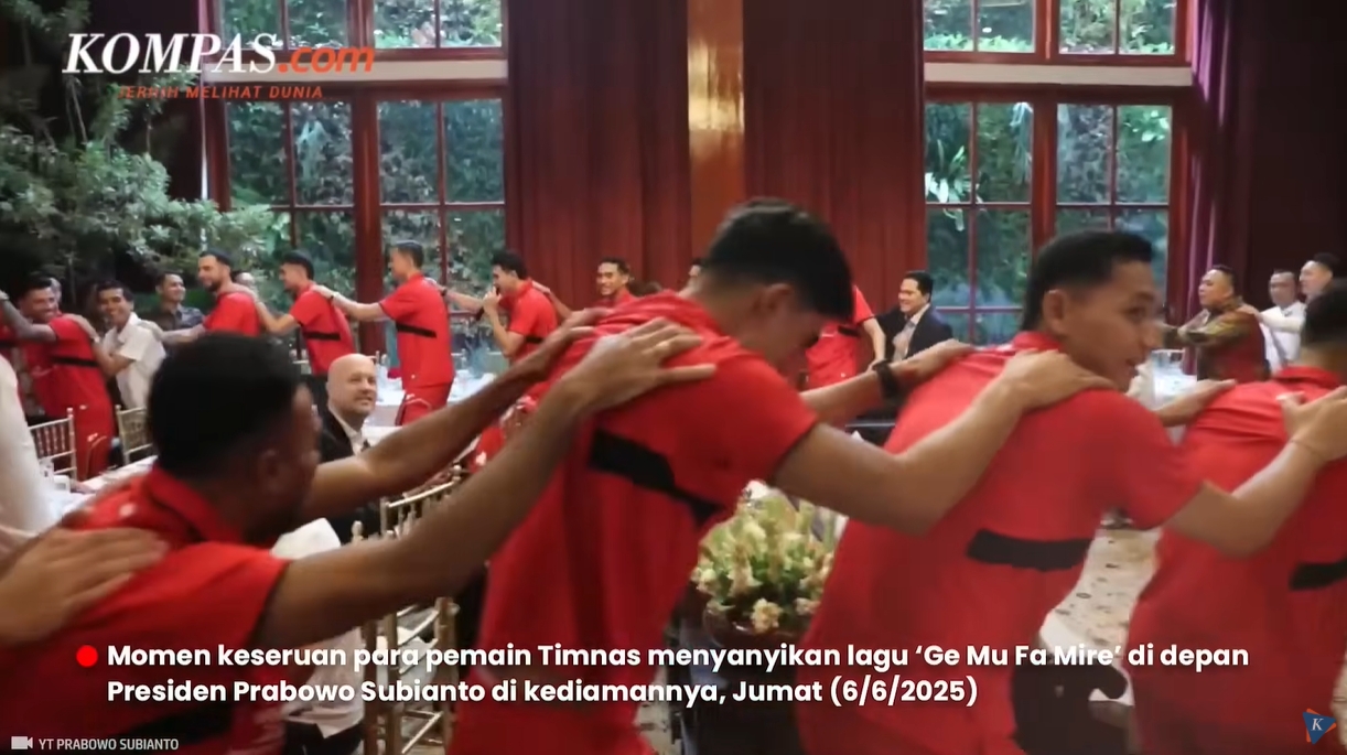 ??印尼全隊獲邀在總統府邸聚餐,全隊圍成圈載歌載舞