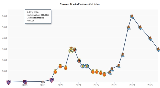 久保建英巔峰身價(jià)曾高達6000萬(wàn)歐,但最近3次更新他每次降低1000萬(wàn)歐,現只剩3000萬(wàn)歐。