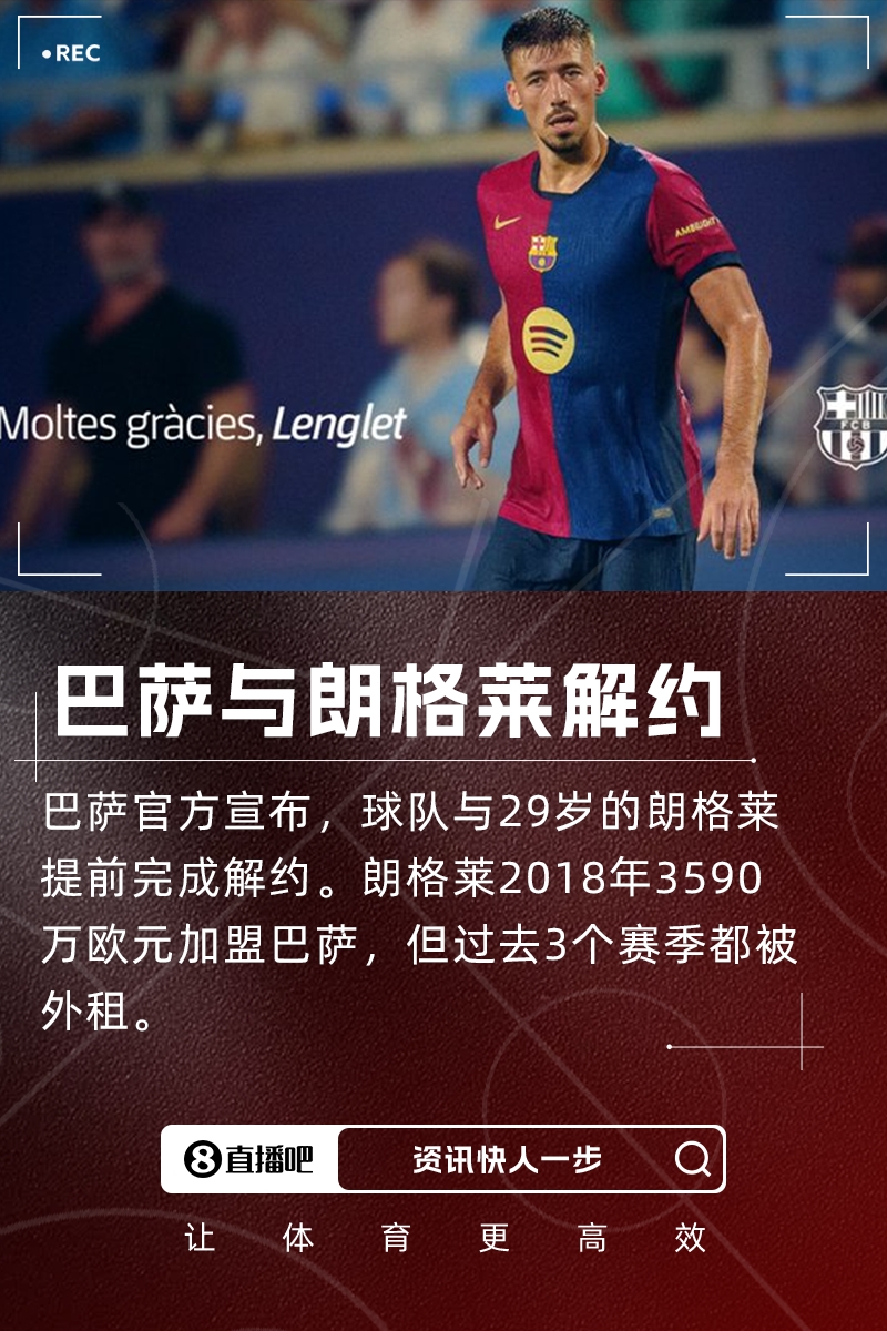 據媒體報道,巴薩此前與朗格萊就薪資遞延支付完成續約,他與巴薩的合同2027年才到期。巴薩將支付一部分剩余合同的薪水,朗格萊則放棄剩余部分。