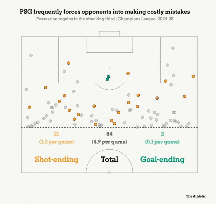 24/25賽季歐冠聯(lián)賽中,巴黎圣日耳曼經(jīng)常迫使對手犯下代價(jià)高昂的錯誤