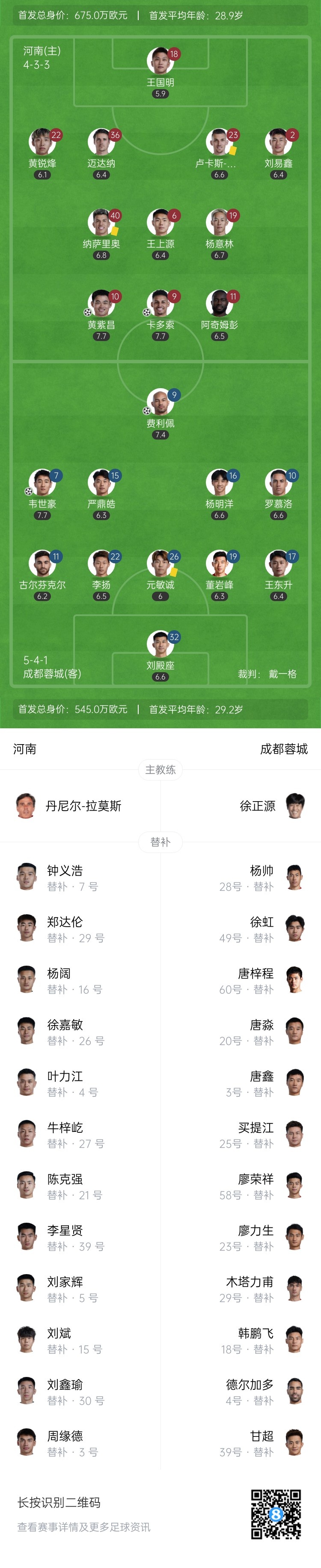 第27分鐘,河南隊左路傳中,后門(mén)柱位置卡多索頭球擺渡到門(mén)前,黃紫昌頭球接力破門(mén)!河南隊2-2再次扳平成都蓉城↓