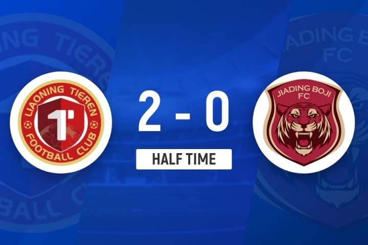 上半場(chǎng)比賽結束,遼寧鐵人主場(chǎng)暫時(shí)2-0領(lǐng)先上海嘉定匯龍。