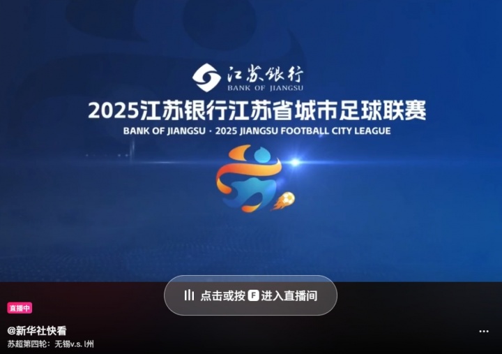06月15日訊 今日“蘇超”無(wú)錫對陣常州,《新華社》在微信視頻號對該場(chǎng)賽事進(jìn)行了直播,并起標題:“蘇超第四輪:無(wú)錫v.s.丨州”。