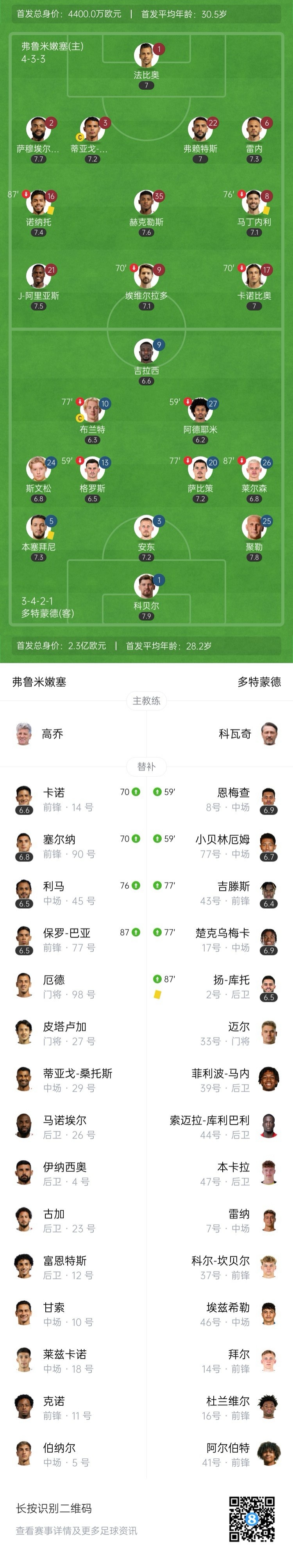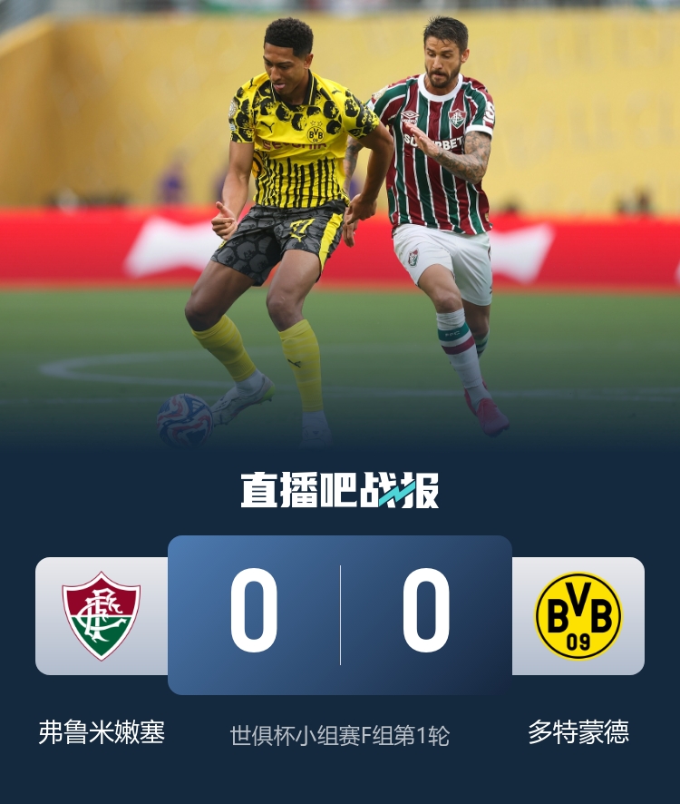 全場(chǎng)比賽結束,弗魯米嫩塞0-0多特。