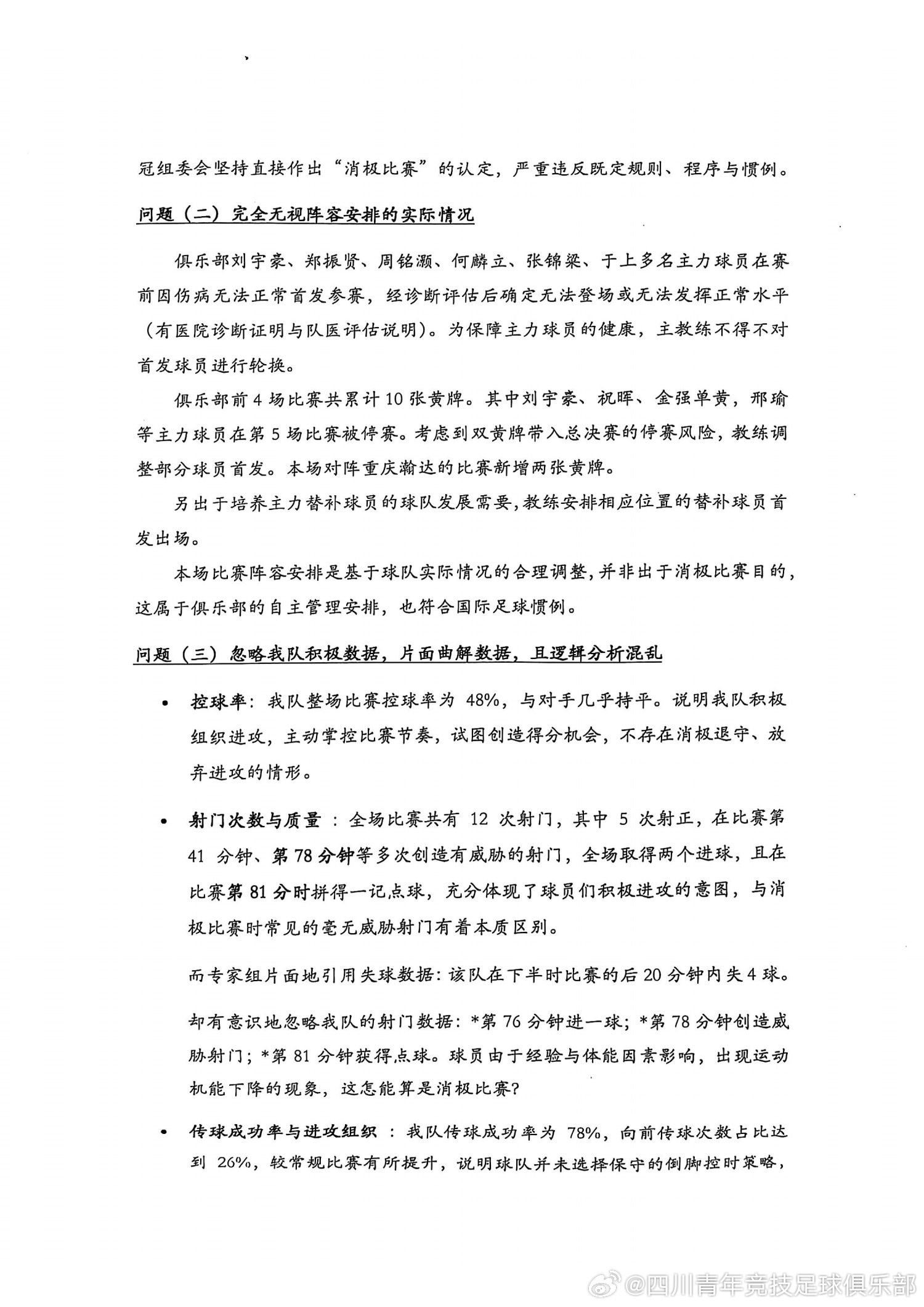 今日,四川青年競技官方發(fā)布聲明,回應足協(xié)的處罰決定。