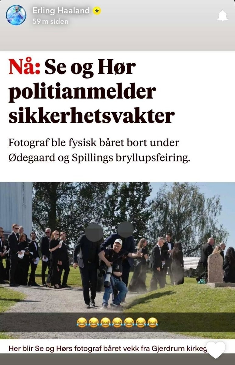 06月23日訊 厄德高大婚的消息最近成為挪威足壇的熱門(mén)話(huà)題,據挪威媒體報道,在厄德高婚禮過(guò)程中,一名攝影記者不知為何被安保人員拖出場(chǎng)外。