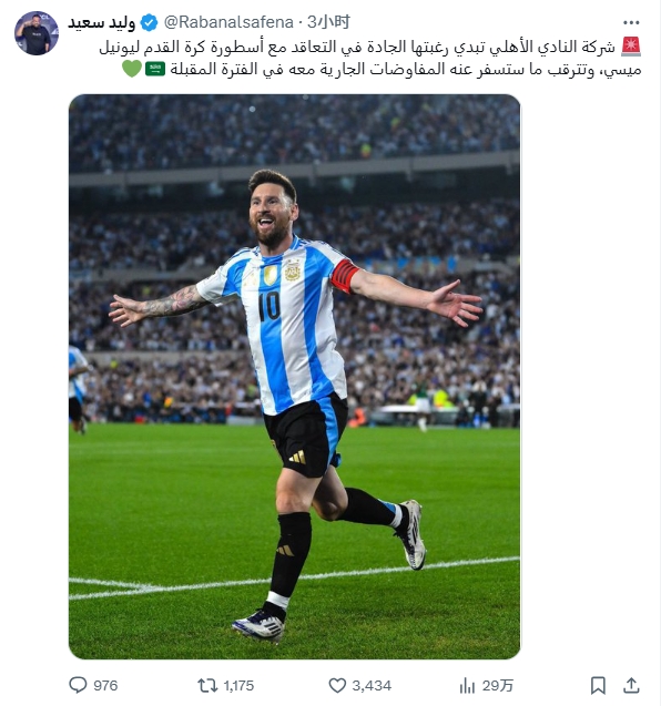 沙特記者???? ????繼續報道,吉達國民有意梅西。
