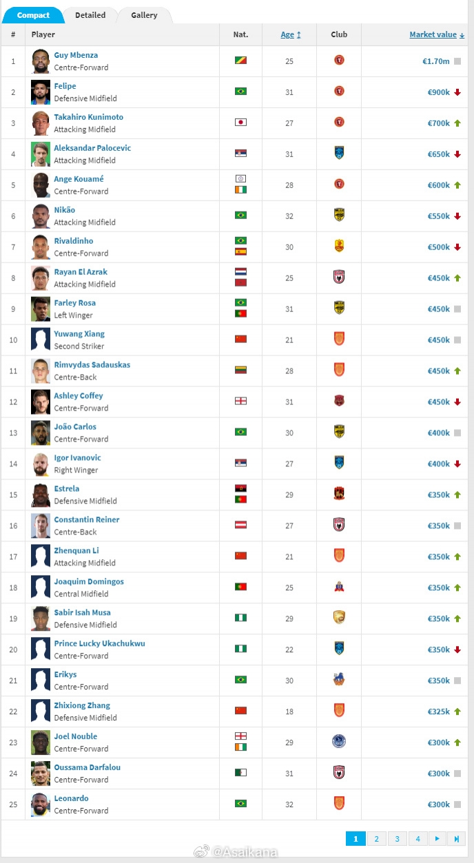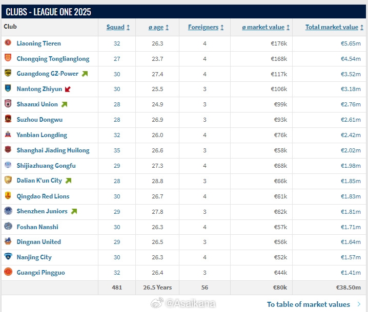 德國轉會(huì )市場(chǎng)網(wǎng)(TransferMarkt.de)2025年中中甲球員身價(jià)例行更新今日已上線(xiàn)。