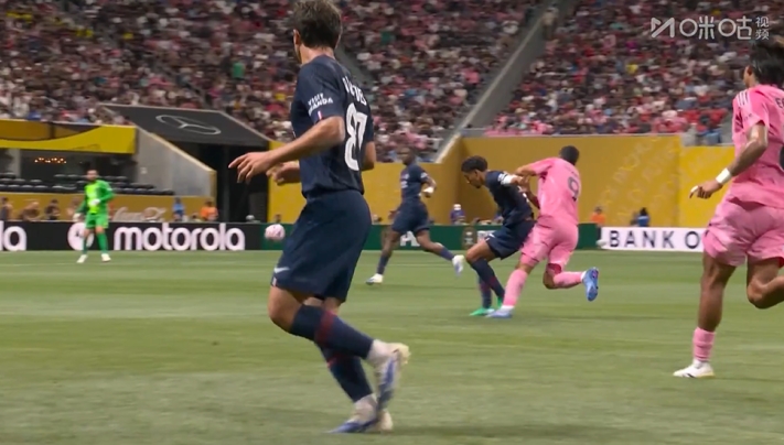 06月30日訊 巴黎vs邁阿密第32分鐘,蘇亞雷斯背后放倒馬爾基尼奧斯,裁判沒(méi)有判罰。