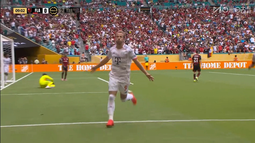 比賽第9分鐘,凱恩禁區外突施冷箭破門(mén),拜仁3分鐘內連入兩球,場(chǎng)上比分弗拉門(mén)戈0-2拜仁!