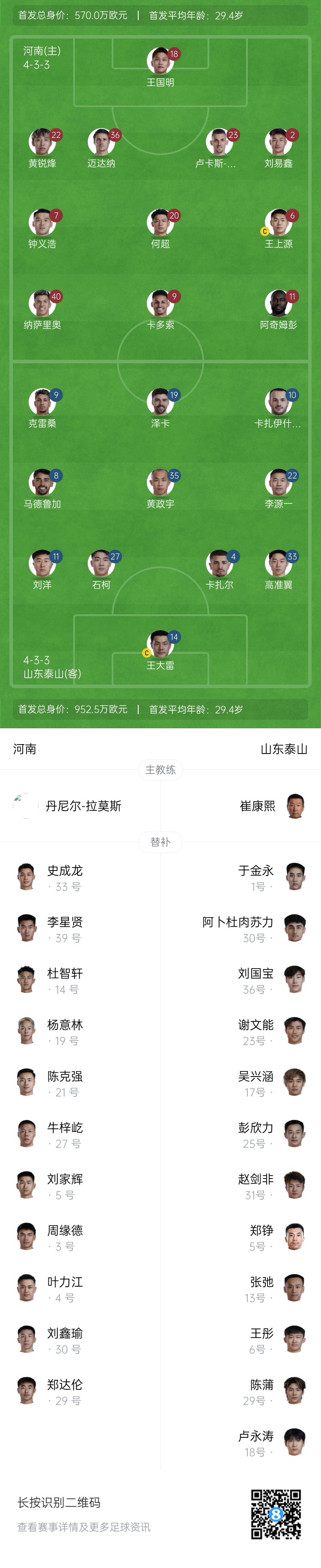 06月30日訊 今晚19點(diǎn)中超第16輪,河南vs山東泰山。賽前首發(fā)陣容已經(jīng)公布。