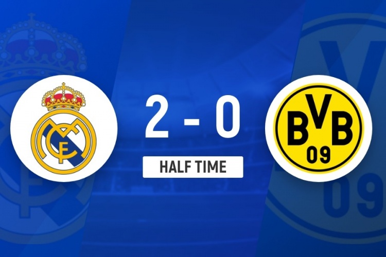 上半場(chǎng)補時(shí)3分鐘。半場(chǎng)戰罷,皇馬2-0多特。