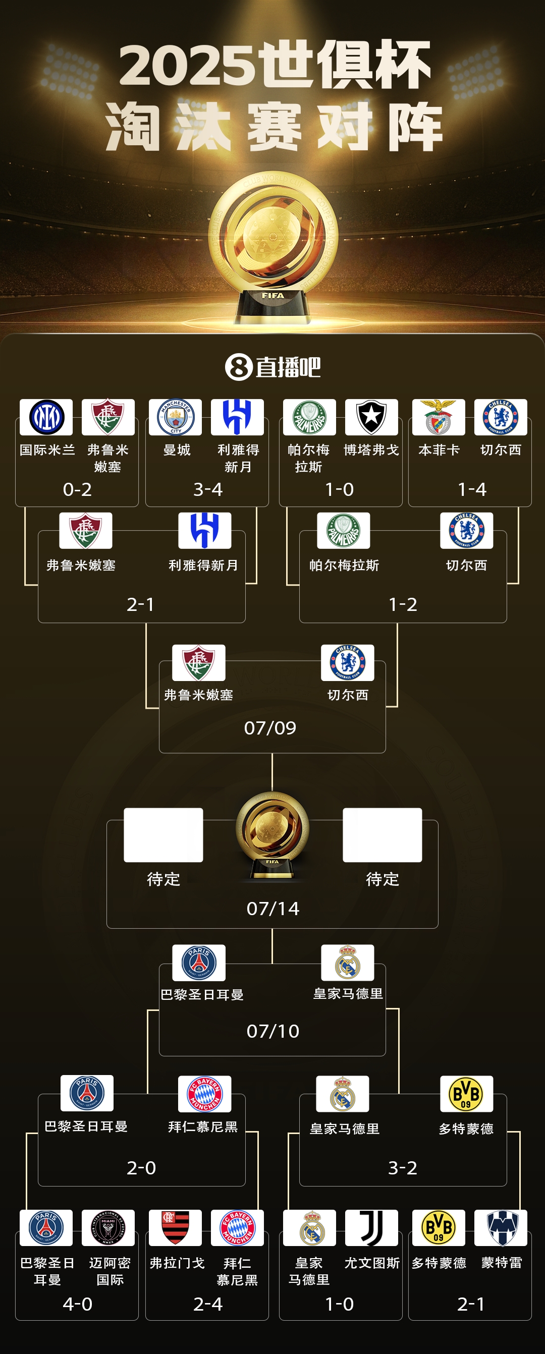 07月06日訊 世俱杯1/4決賽戰罷,半決賽對陣出爐。