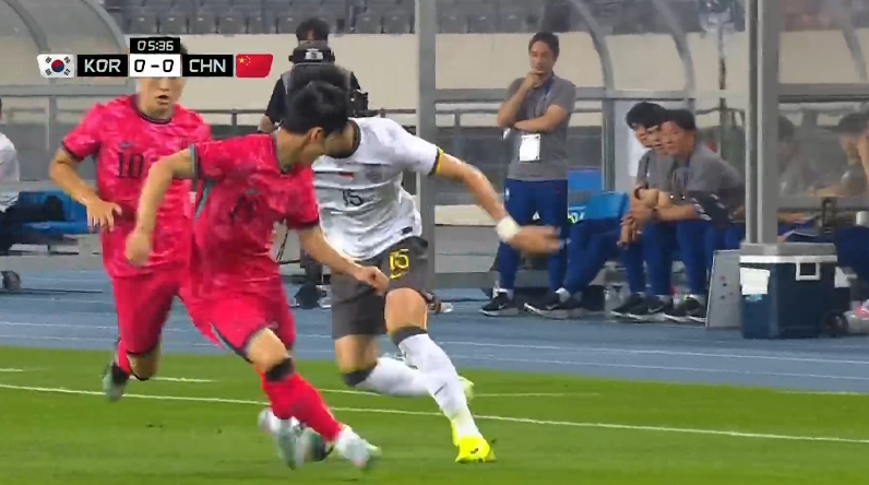 07月07日訊 國足vs韓國第5分鐘,王鈺棟邊路1v2成功后回傳,隨后國足直塞被裁判擋了!