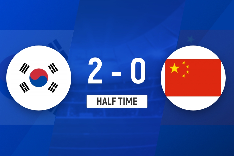 上半場(chǎng)比賽結束,中國男足0-2韓國男足。