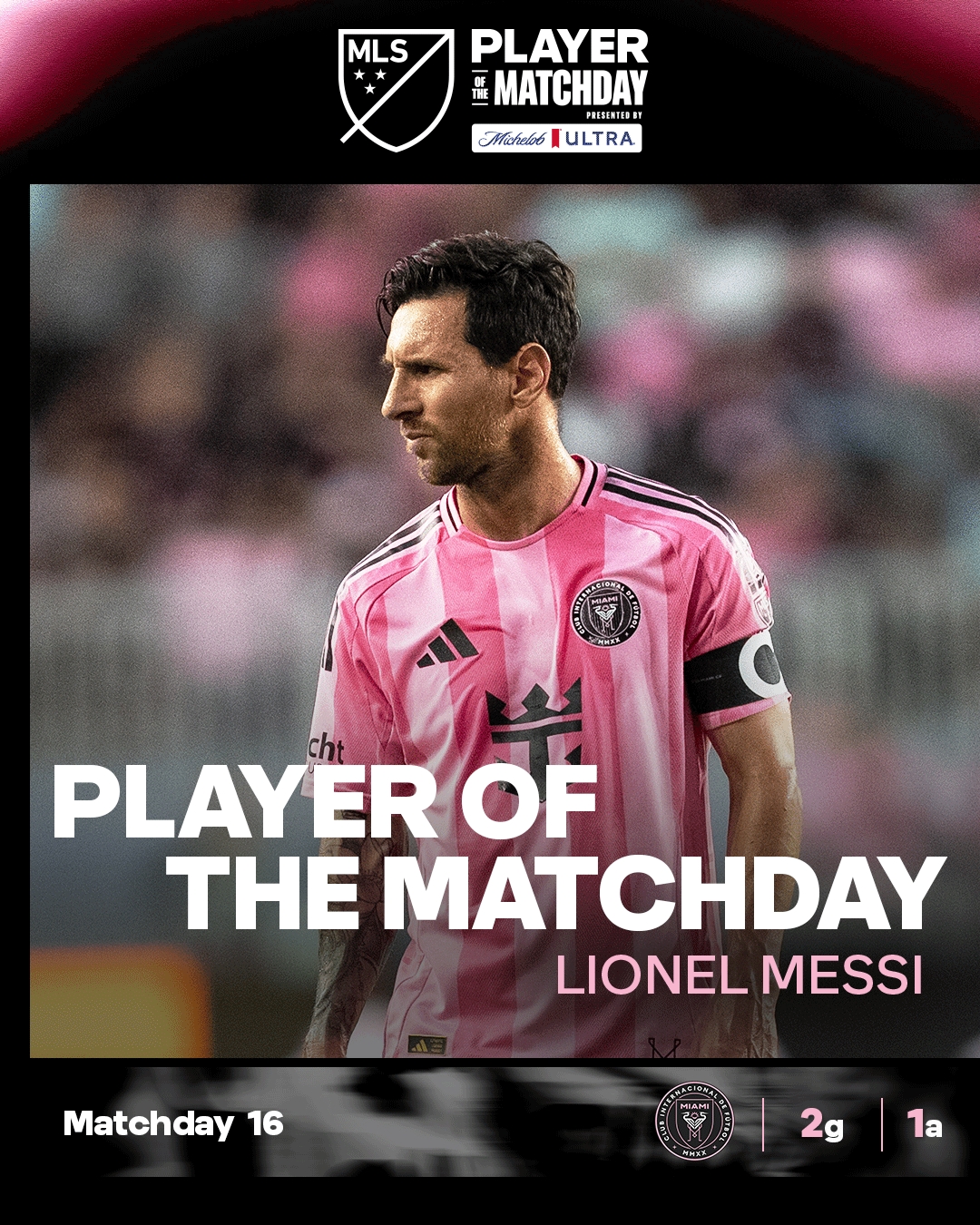 5月30日訊 官方消息,梅西當選美職聯(lián)第16比賽日最佳球員。
