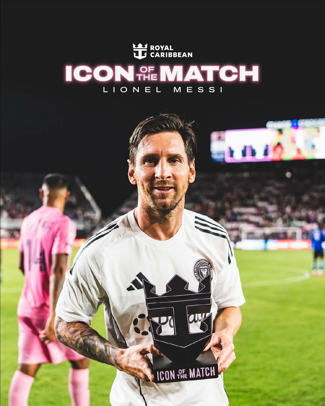 此役梅西2射1傳,幫助邁阿密?chē)H取勝,他當選本場(chǎng)比賽邁阿密?chē)H隊內最佳球員。