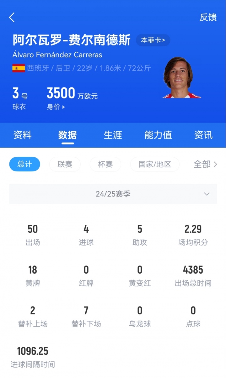 阿爾瓦羅-費爾南德斯,現年22歲,西班牙左后衛,上賽季從曼聯(lián)以600萬(wàn)歐轉會(huì )至本菲卡,德轉身價(jià)3500萬(wàn)歐。