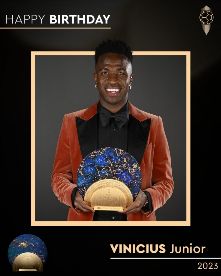 7月12日訊 今天是皇馬前鋒維尼修斯的25歲生日,金球獎官方為他送上祝福。