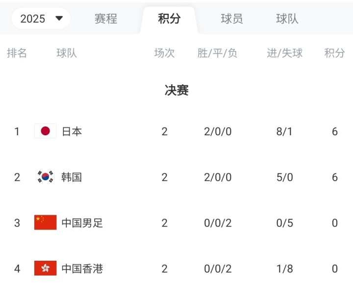 目前,國足2戰皆負,憑借凈勝球優(yōu)勢暫列第三。末輪,國足將和中國香港隊爭奪賽事的第三名。
