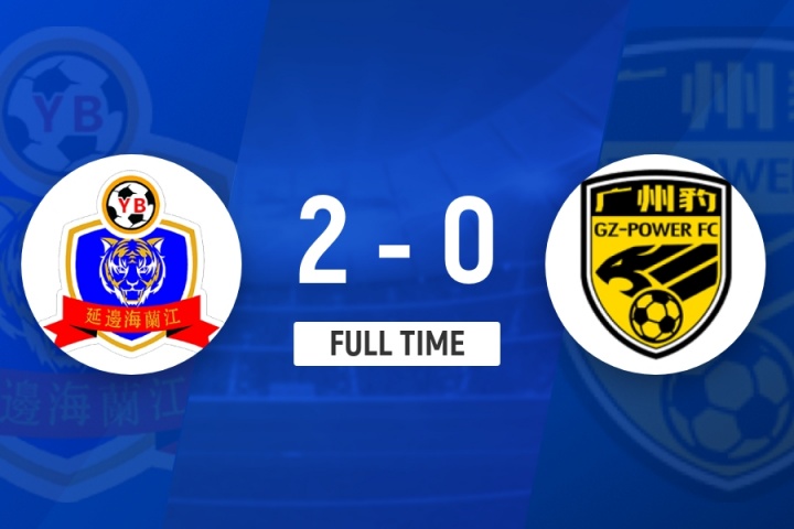 下半場(chǎng)補時(shí)5分鐘,延邊龍鼎2-0廣東廣州豹。